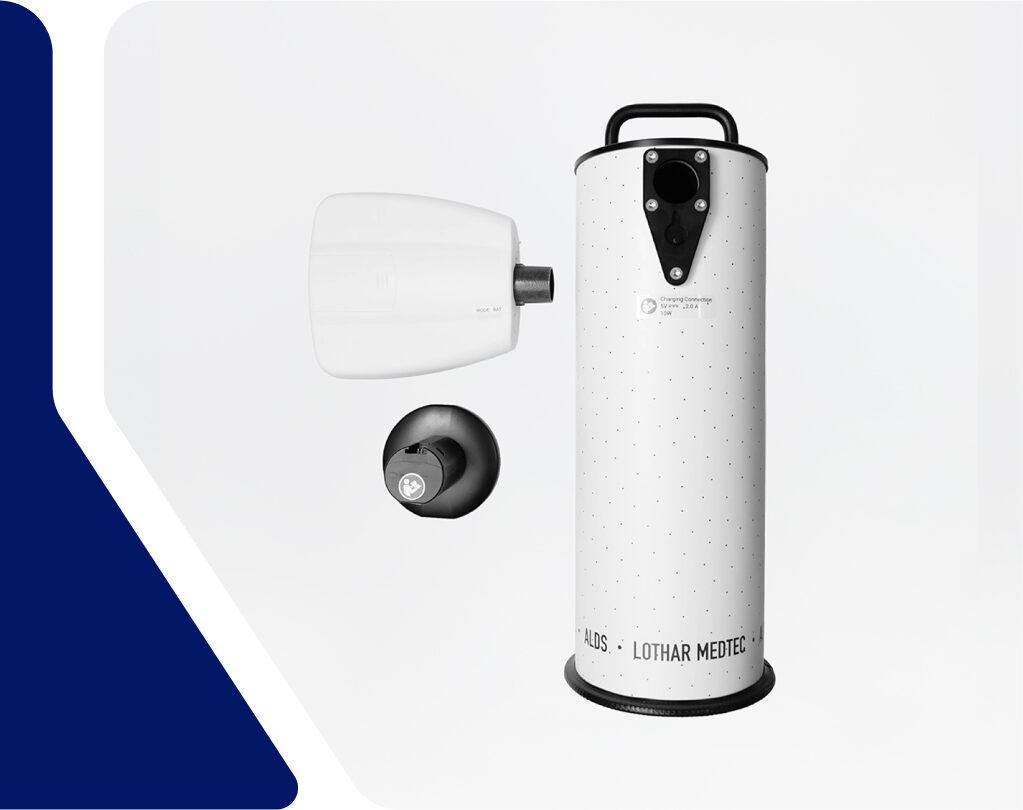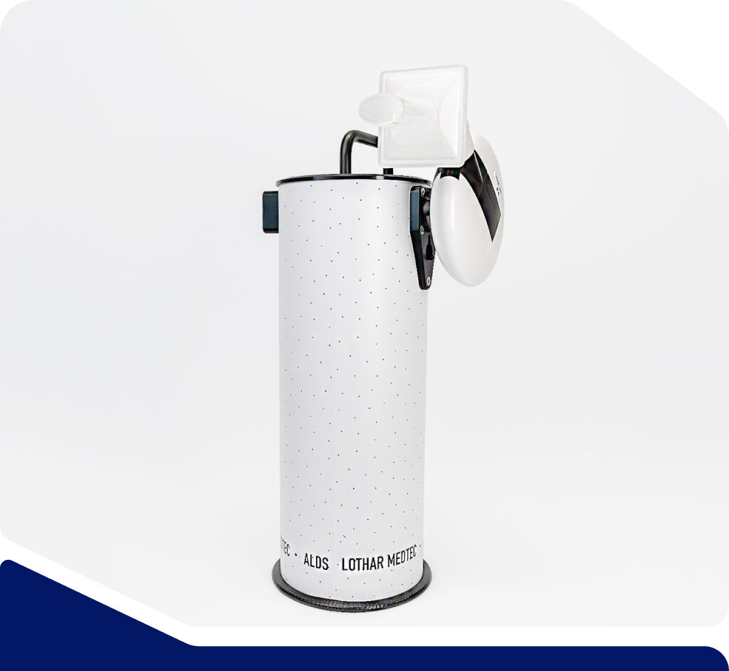 Our ALDS is a portable solution designed for efficient lung health assessments, measuring spirometry and airway resistance. Its ease of use, comprehensiveness and affordability, making it ideal for outpatient care.